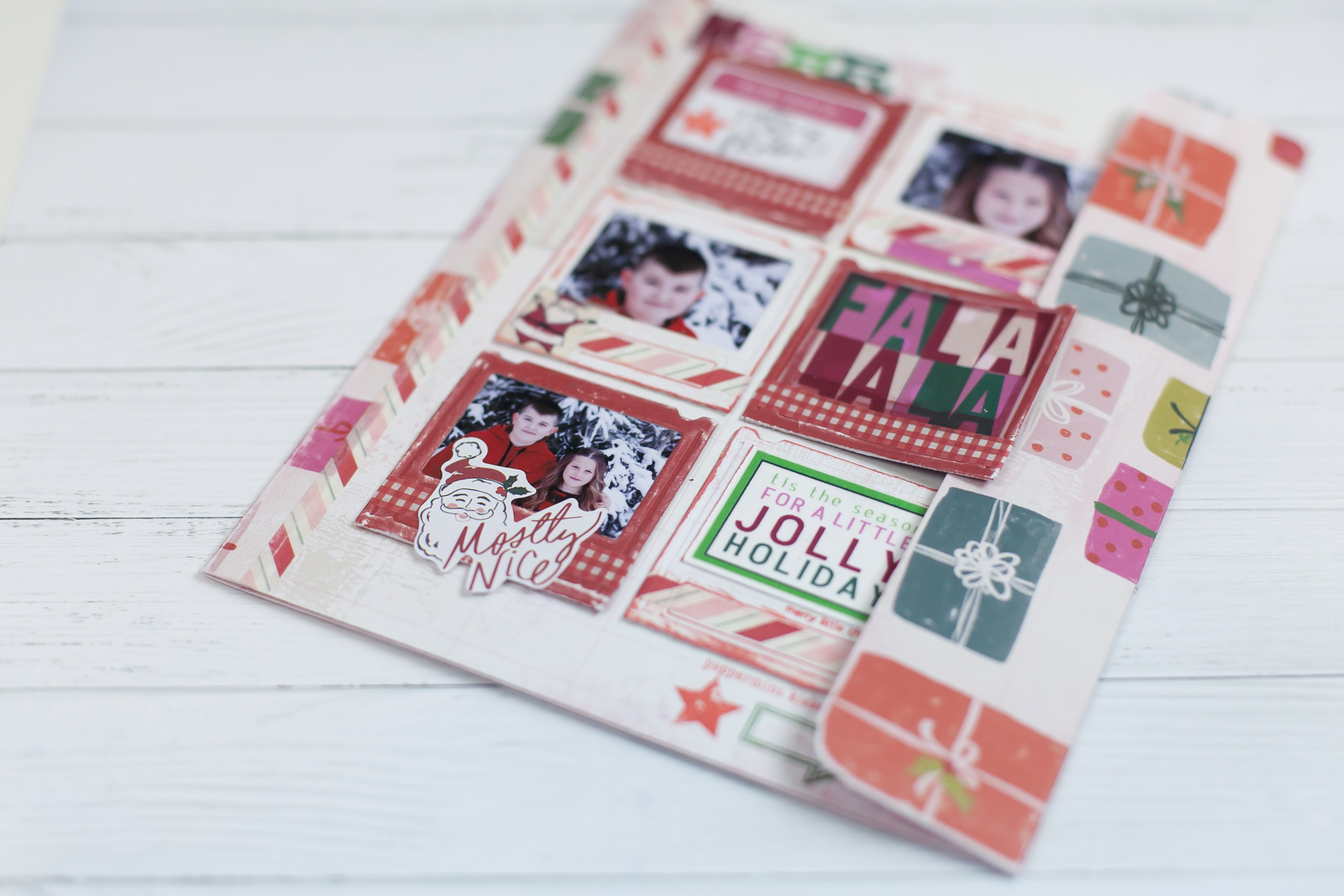 Take pattern papers, photos and more to create this fabulous scrapbook page turned mini folio! The perfect way to honour, celebrate and store holiday memories that just quite don't have a home or made it into an album. A great make for current December projects. Makes a great addition into a Memory Planner too!